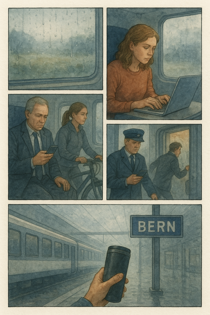 Es sind immer die gleichen Gesichter, die mir im Zug begegnen. Da ist diese Frau, die kaum zugestiegen, ihren Laptop aufklappt und wie wild um sieben Uhr morgens beginnt, auf die Tastatur einzuhämmern, als gäbe es kein Morgen mehr. Oder hat sie vielleicht ihre Vorbereitungen für eine Präsentation noch nicht abgeschlossen und ist in Zeitnot? Aber das gleich jeden Tag? Sie wird ihren Computer erst wieder zuklappen, wenn der Zug am Perron in Bern hält. Ich musste ihr aber auch schon zuschauen, wie sie im Waggon noch an ihrer Pedicure feilt. Ich bin mir nicht wirklich sicher, ob das unbedingt während einer Zugfahrt erledigt werden muss, will mich jetzt aber auch nicht als Moralapostel aufspielen.